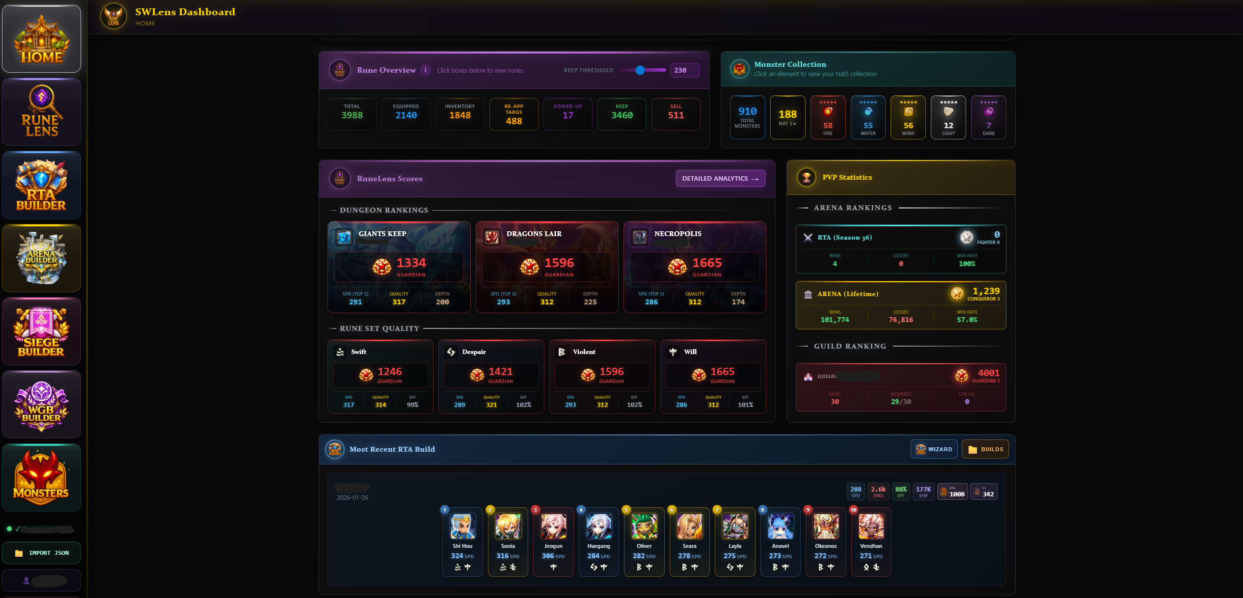 Real-time rune analysis, data-driven team building, monster database, rune analytics, and more. Everything you need to dominate RTA, Siege, Arena, and PvE content.